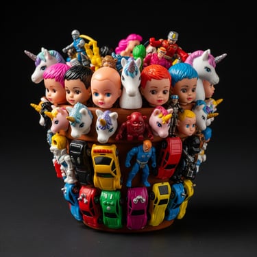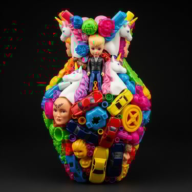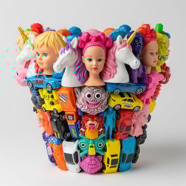 'Plastic Blingtastic' is where sustainability meets creativity. Upcycled plastic toys are transformed into funky homewares that add a unique bit of individuality to any space, from a family home to a student pad, a neutral canvas to a creative office space.